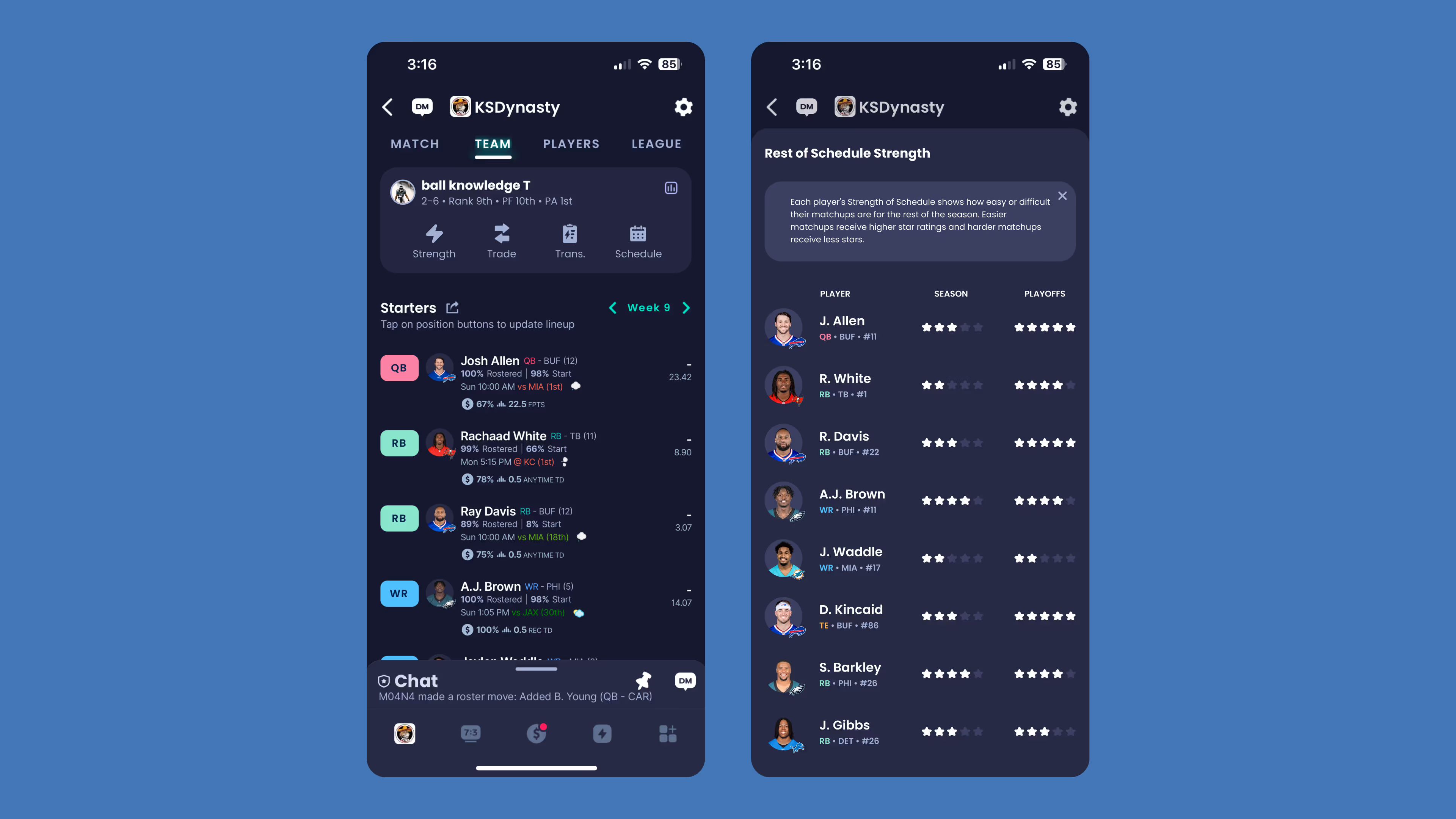 Sleeper is a fantasy sports platform where Dynasty players make high-stakes decisions every week. I explored how the iOS app could better support trades and roster management by surfacing critical contract and player data without disrupting the fast, familiar workflows users are acustomed to.