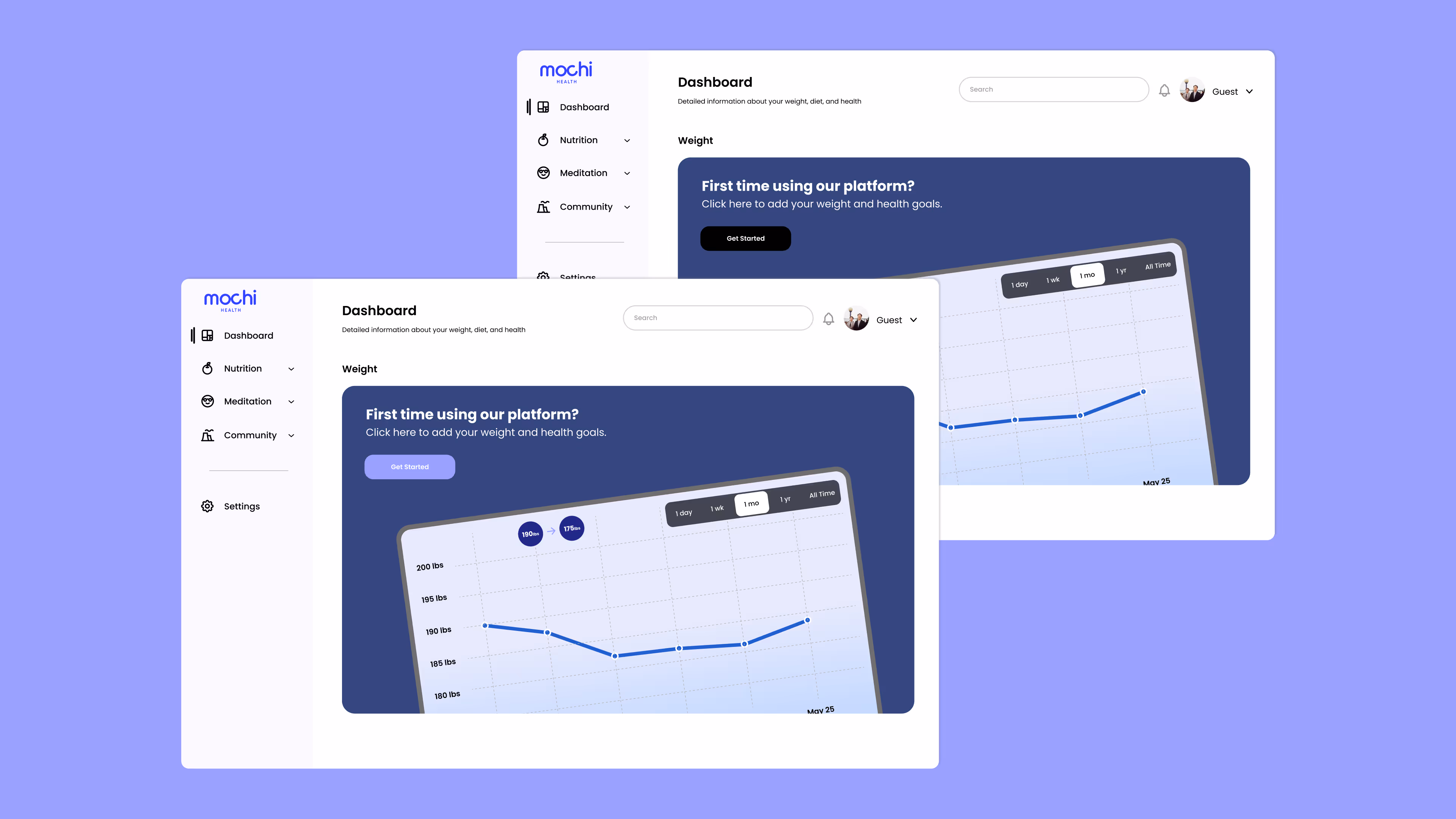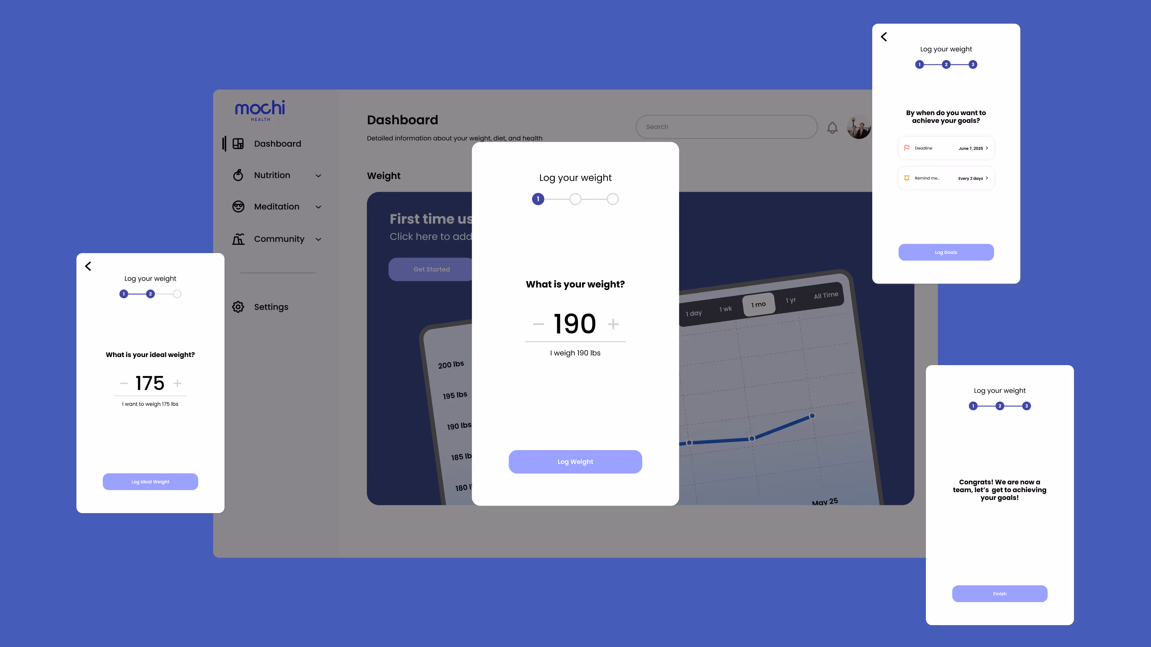 Mochi Health is a wellness platform focused on long-term behavior change. As part of a take-home design challenge, I explored how a weight tracker could help users stay motivated through clear progress visualization, lightweight logging, and engagement mechanics like streaks and milestones. This sprint was conducted within a three-day timeframe.