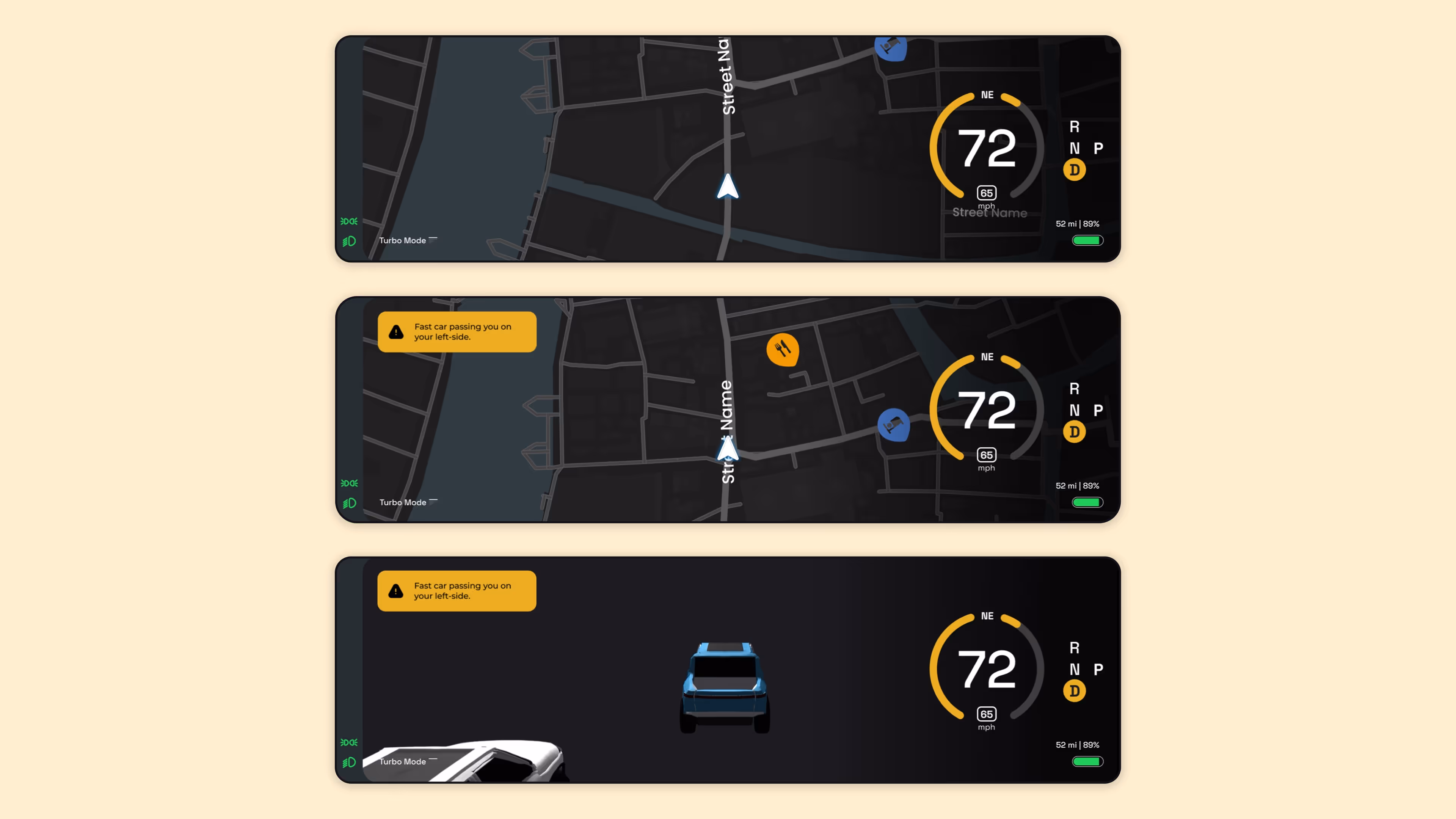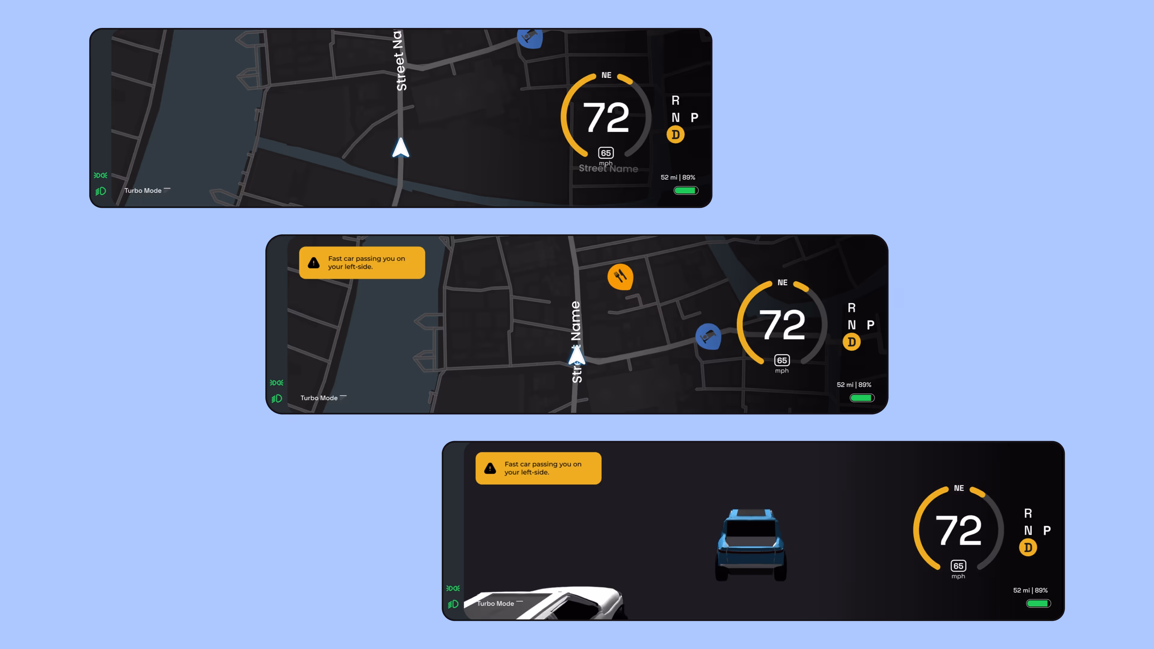 Rivian is rethinking what vehicle dashboards should do when drivers need focus most. I worked on a self-directed project with design team members to redesign the navigation and infotainment experience. I sought out to reduce distraction, prioritizing safety, and helping drivers respond faster in critical moments.