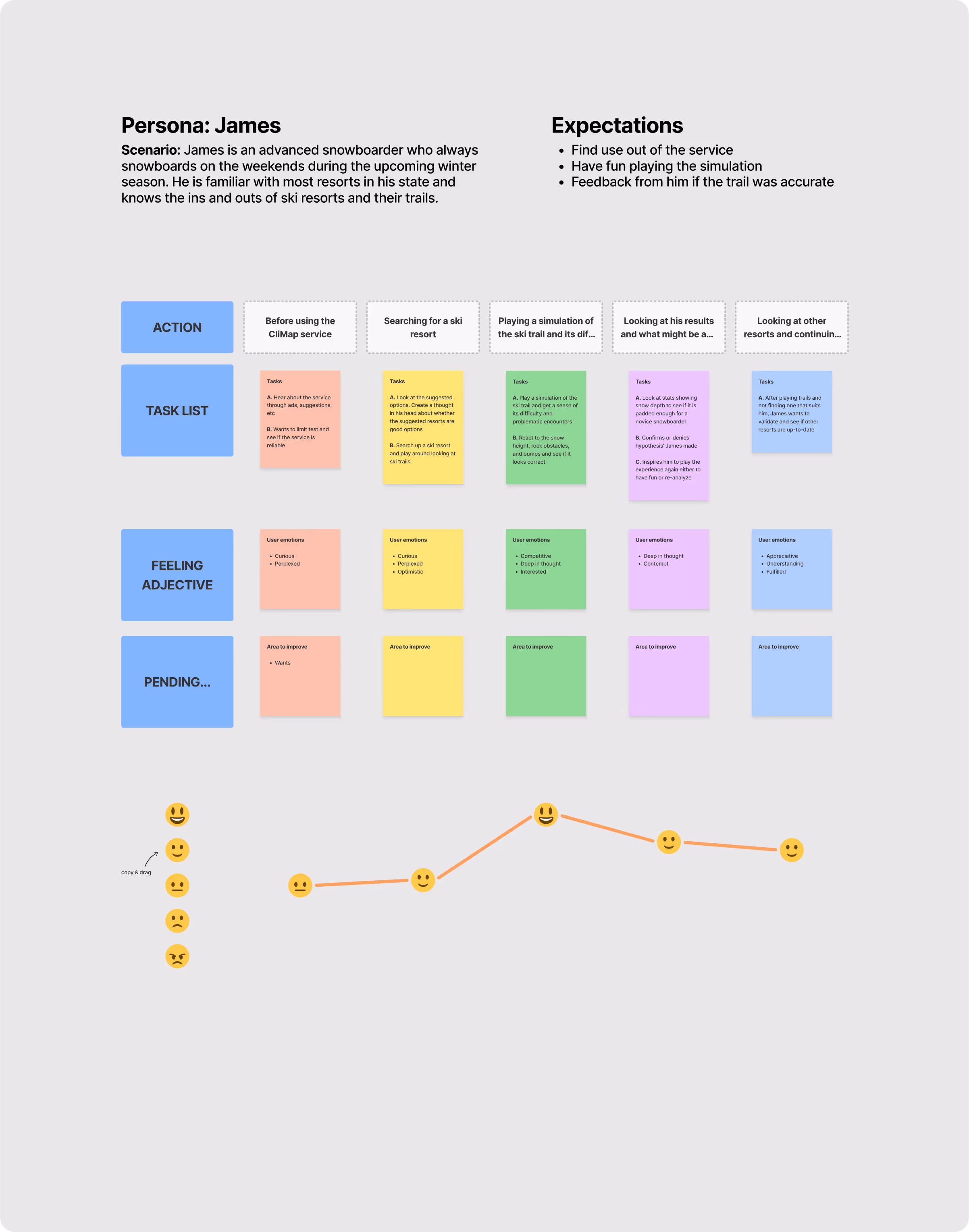 To ground SnowLabs in real needs, I interviewed 30+ snowboarders and skiers to understand who actually hits the slopes in a timespan of 4 weeks. Three distinct rider archetypes emerged: