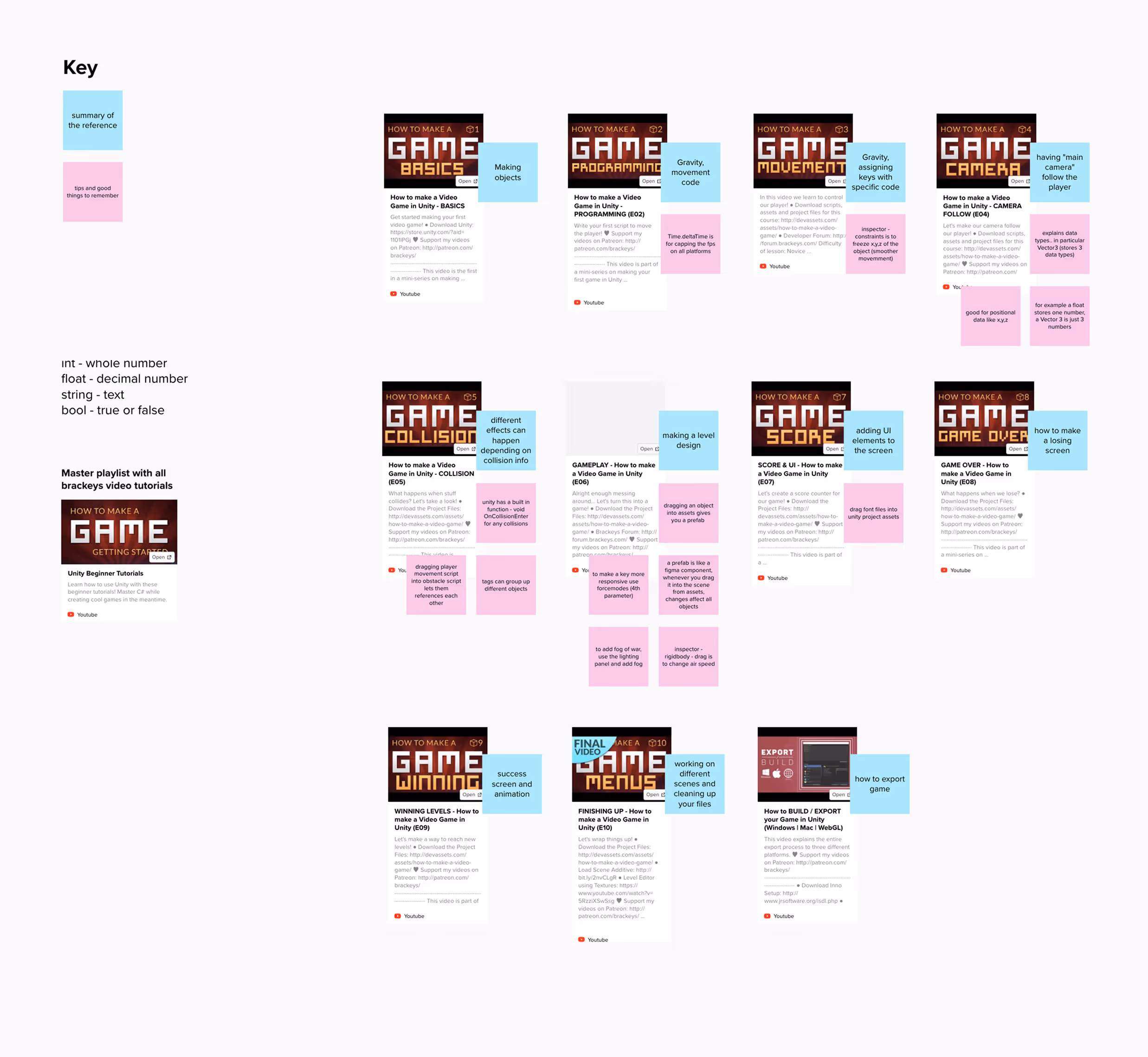 I documented my learning in real time, from secondary research in Mural to Unity terrain experiments and coding exercises. While the boards and notes aren’t polished, they illustrate how I approached problem-solving, brainstormed in an organized way, and acquired new technical skills to support immersive design.